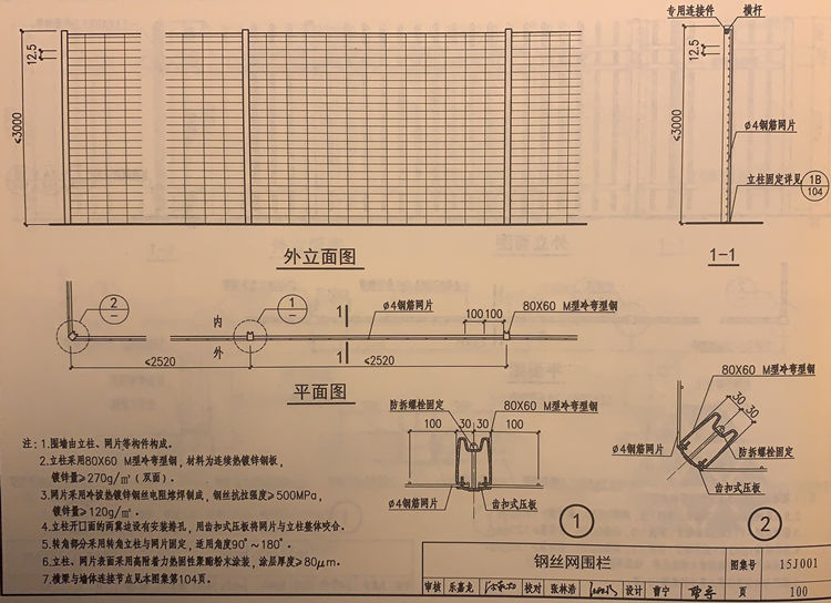 2.鋼絲網(wǎng)圍墻立柱采用80X60M型冷彎型鋼,材料為連續(xù)熱鍍鋅鋼板,鍍鋅量≥270g/㎡(雙面)。