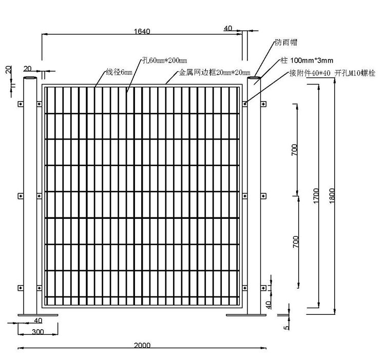 2、碼頭圍欄網(wǎng)所有材料必須嚴(yán)格按照采購尺寸的要求進(jìn)行采購,且保證隔離網(wǎng)的制作尺寸要求。
