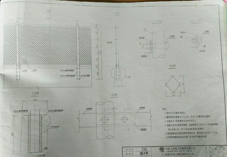 3、本圖鐵路立交編織網(wǎng)防落網(wǎng)設(shè)在砼護(hù)欄項(xiàng)上。