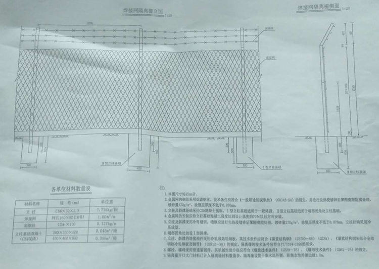 1、本圖鋼板網(wǎng)護欄尺寸均以mm計。