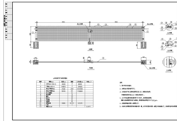 2、本圖機場鋼筋網(wǎng)圍界大門為6米寬雙扇平開門。