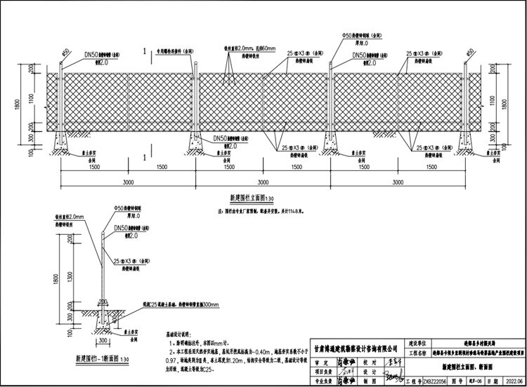 5、新建圍欄整體高度1.8米,包含預(yù)埋地下30公分,圍欄立柱中心間距為3.0米,新建圍欄總長(zhǎng)度為1148米。