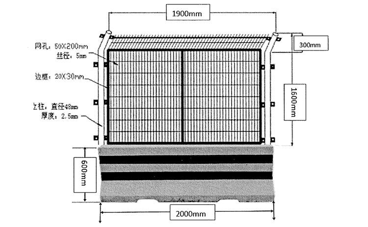 8、鐵柵欄寬度1900mm。