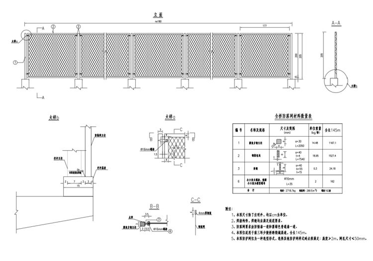 5、本圖防護網(wǎng)僅為一種選型形式,選擇其他防護網(wǎng)樣式時必須滿足:高度≥2m,網(wǎng)孔尺寸≤50mm。