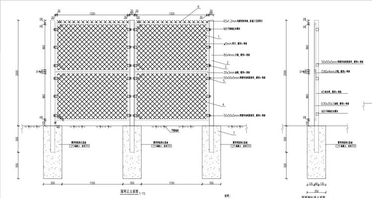 3.單樘圍網(wǎng)寬1.5m,高2m ,上部設(shè)倒刺。