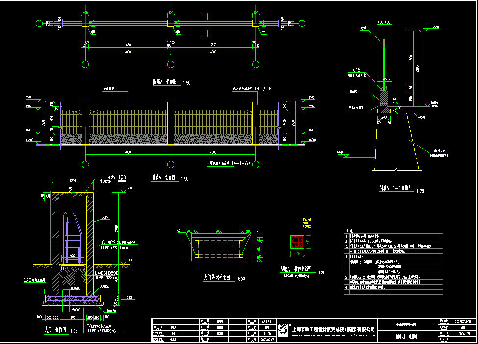 3. 廠區(qū)采用鑄鐵透綠圍墻MU7.5混凝士實(shí)心磚,M7.5水泥砂漿砌筑。鋼筋HRB400表示?!?.00以下采用MU15混凝土實(shí)心磚,Mb15水泥砂漿砌筑。