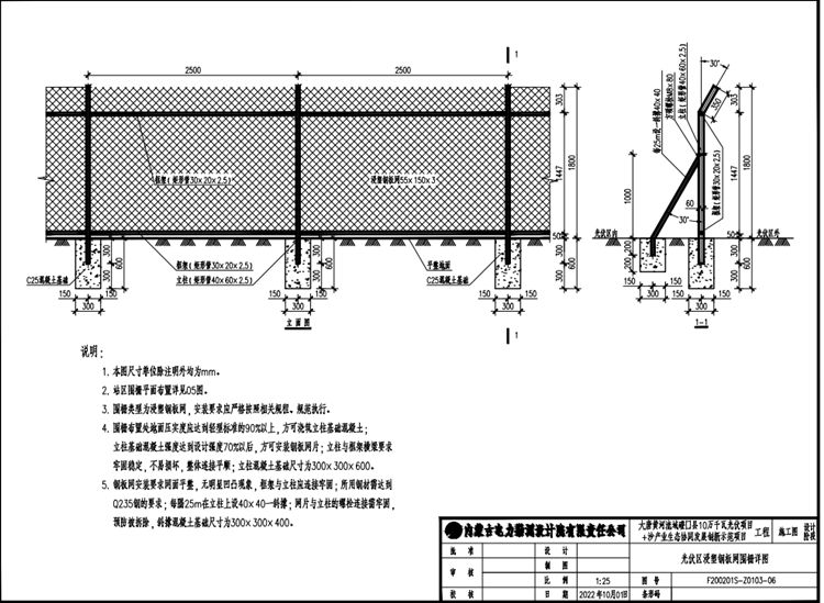 1.本圖光伏區(qū)浸塑鋼板網(wǎng)隔離柵尺寸單位除注明外均為mm。