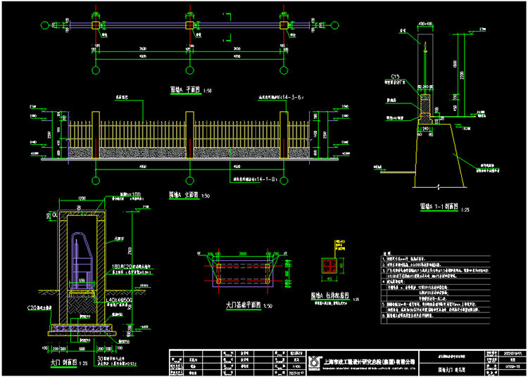3. 貨場廠區(qū)采用鑄鐵透視圍墻MU7.5混凝土實心磚,M7.5水泥砂漿砌筑。鋼筋ΦHRB400?!?.00以下采用MU15混凝土實心磚,Mb15水泥砂漿砌筑。