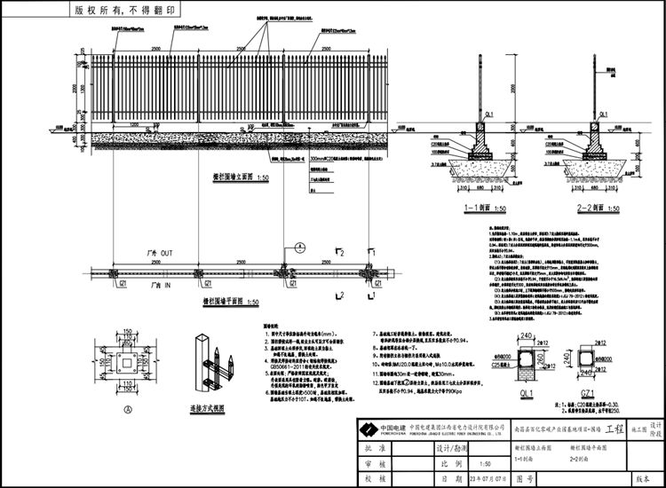 1.圖中柵欄圍墻尺寸單位除標(biāo)高外均為毫米(mm)。