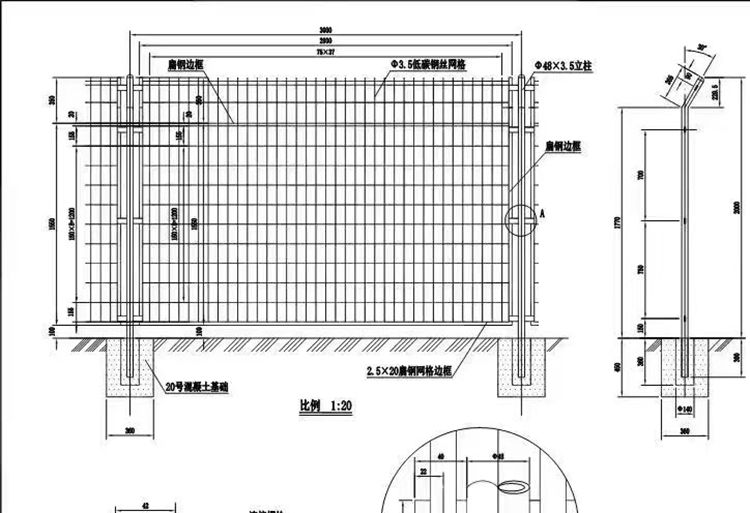 4、金屬網(wǎng)隔離網(wǎng)的鋼絲,宜采用普通低碳鋼絲,并應(yīng)符合《一般用途低碳鋼絲》(YB/T 5294-2009)的規(guī)定。金屬網(wǎng)隔離網(wǎng)的規(guī)格尺寸應(yīng)符合規(guī)范要求。
