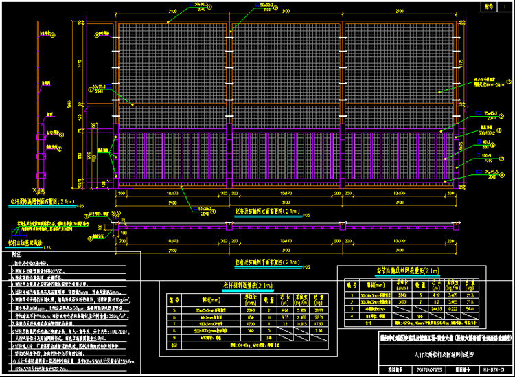 5.高架橋防落物網(wǎng)欄桿立柱與鋼底座采用四面圍焊、焊縫高5mm其余焊縫高3mm。