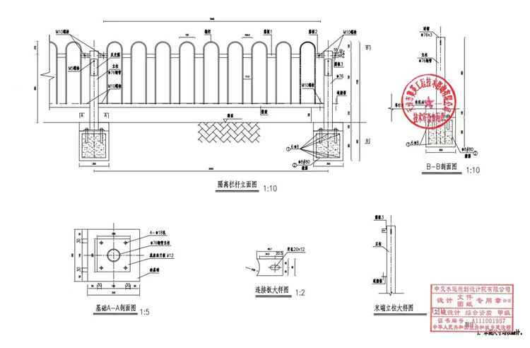 1、本圖隔離欄桿單位以mm計(jì)。