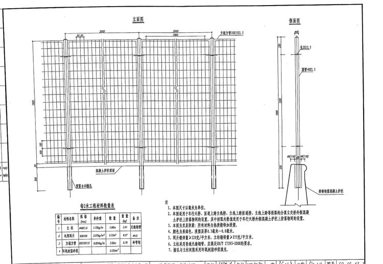2、本圖防落物網(wǎng)適用于車(chē)行天橋、匝道上跨主線橋、主線上跨匝道橋、 主線上跨等級(jí)路的分離立交橋外側(cè)混凝土護(hù)欄上防落物網(wǎng)的設(shè)置。其中括弧內(nèi)數(shù)值適用于車(chē)行天橋外側(cè)混凝土護(hù)欄上防落物網(wǎng)的設(shè)置。
