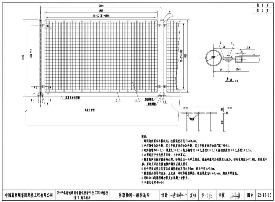 G59呼北高速湖南省新化至新寧段XXSJ03標(biāo)段第3施工標(biāo)段Bf-Ww-B-1防落物網(wǎng)生產(chǎn)廠家