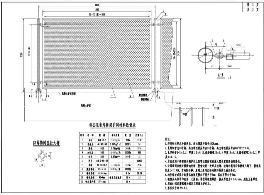 4.本圖適用于橋梁段內(nèi)側(cè)護(hù)欄上即需設(shè)置防眩設(shè)施又需設(shè)置防落物網(wǎng)路段。