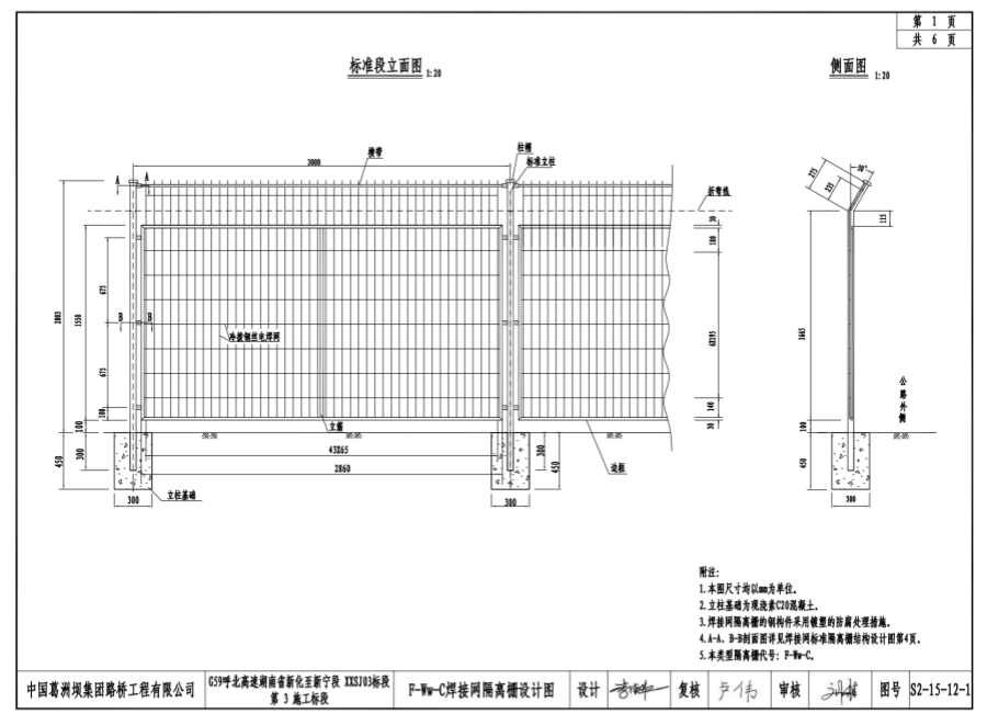 4.A-A、B-B剖面圖詳見焊接網(wǎng)標(biāo)準(zhǔn)隔離柵結(jié)構(gòu)設(shè)計(jì)圖第4頁(yè)。