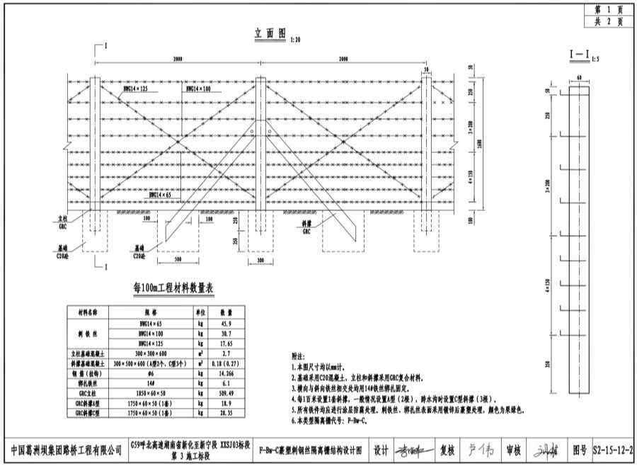 2.基礎采用C20混凝土,立柱和斜撐采用GRC復合材料。