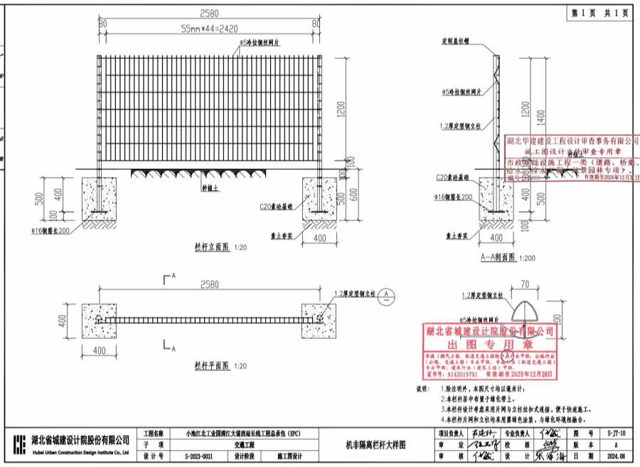 3.本欄桿設(shè)計考慮采用片網(wǎng)與立柱拉扣式連接,便于快速施工。